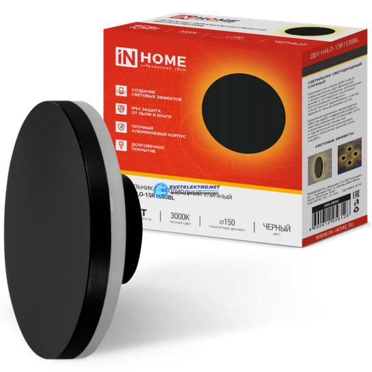 Светильник уличный светодиодный ДБУ HALO-R1530BL 15 Вт 3000К IP54 150x50мм круглый черный, код 4690612056128, производитель IN HOME