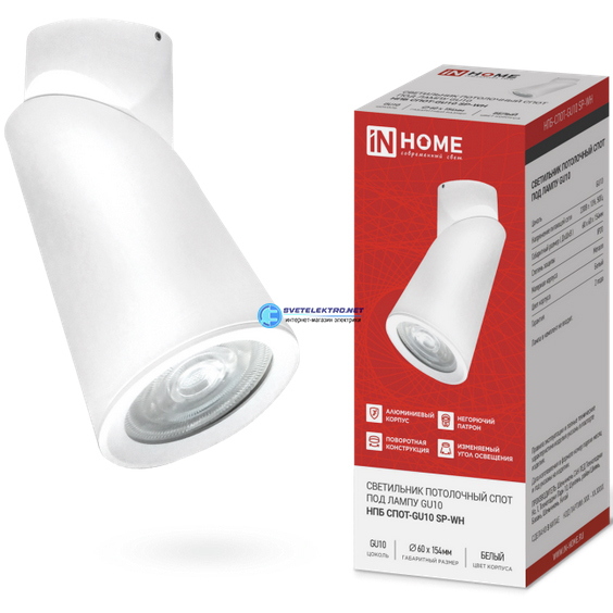 Светильник потолочный НПБ-СПОТ-GU10 SP-WH 60х154мм белый IN HOME 4690612056623 IN HOME