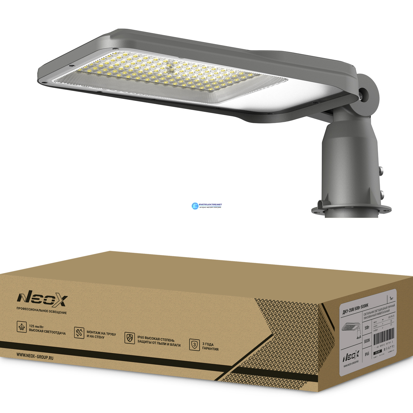 Светильник уличный линзованный светодиодный ДКУ-2UB 50Вт 230В 5000К 6250Лм 125лм/Вт универсальный IP65, код 4690612057415, производитель NEOX