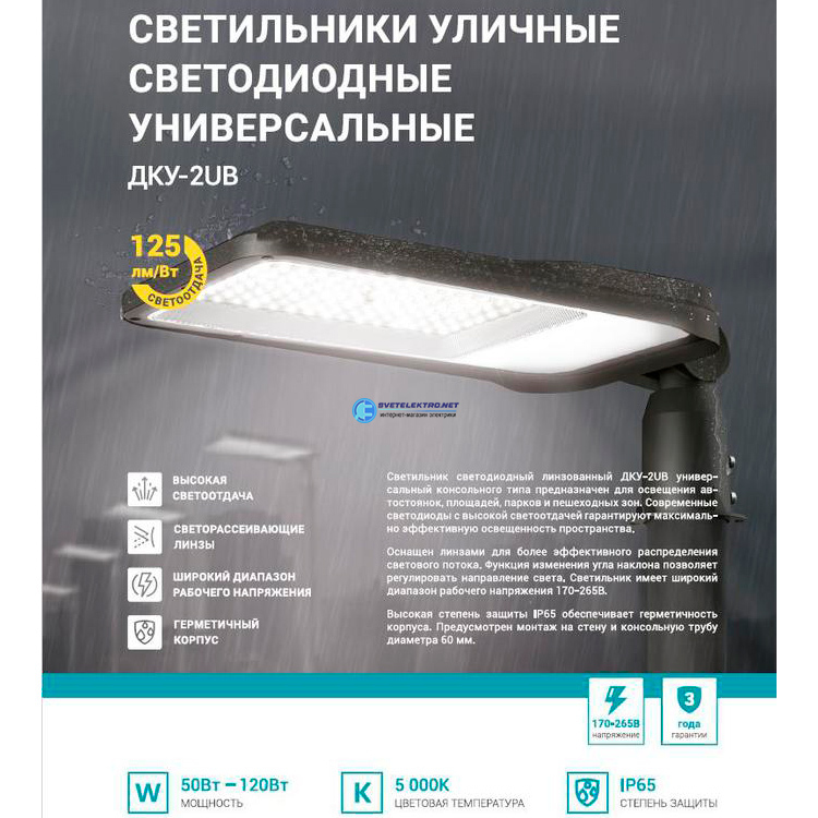 Светильник уличный линзованный светодиодный ДКУ-2UB 70Вт 230В 5000К 8750Лм 125лм/Вт универсальный IP65, код 4690612057422, производитель NEOX
