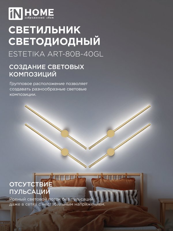 Светильник светодиодный ESTETIKA ART-80B-40GL 15Вт 230В 4000K 1050Лм 800х60x98 золото, код 4690612057835, производитель IN HOME