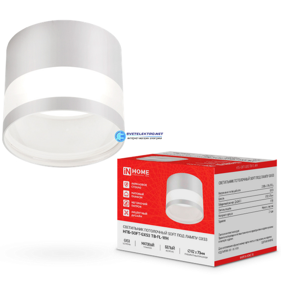 Светильник потолочный НПБ-SOFT-GX53 ТB-FL-WH под GX53 матовый плафон, 82х70мм белый, код 4690612058009, производитель IN HOME