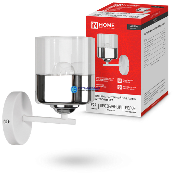 Светильник настенный под лампу AURA TESO-WH-E27 100x150x180 белый IN HOME 4690612058061 IN HOME