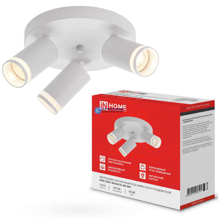 Светильник потолочный НПБ СПОТ-3RxGU10-AR-WH под GU10 с круглой базой белый IN HOME 4690612058191 IN HOME