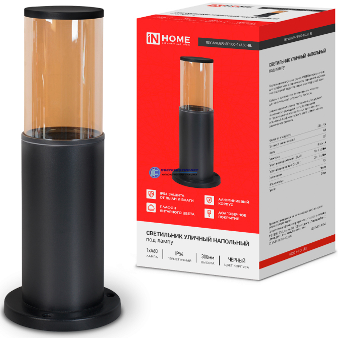 Светильник уличный напольный ТБУ AMBER-SP300-1xA60-BL алюминиевый 300мм черный IP54 IN HOME 4690612059211 IN HOME