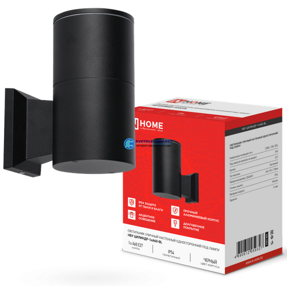 Светильник уличный настенный односторонний НБУ ЦИЛИНДР-1xА60-BL алюминиевый черный IP54, код 4690612059327, производитель IN HOME