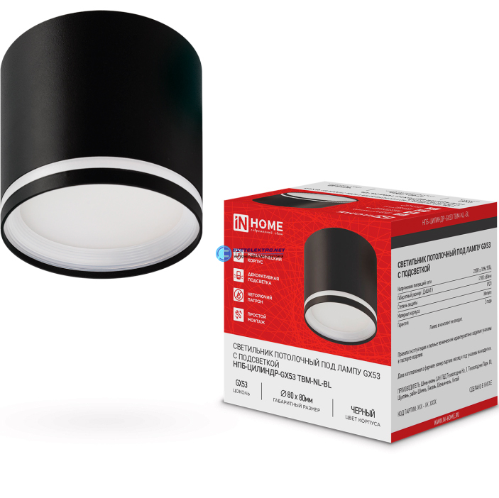 Светильник потолочный НПБ-ЦИЛИНДР-GХ53 TBM-NL-BL с подсветкой 80х80мм черный IN HOME 4690612059419 IN HOME