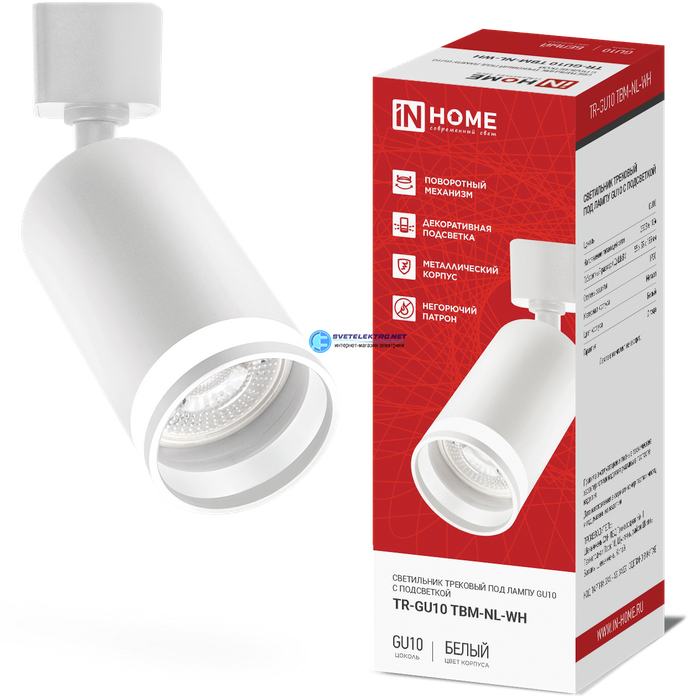 Светильник трековый TR-GU10 TBM-NL-WH под GU10 с подсветкой белый IN HOME 4690612059464 IN HOME