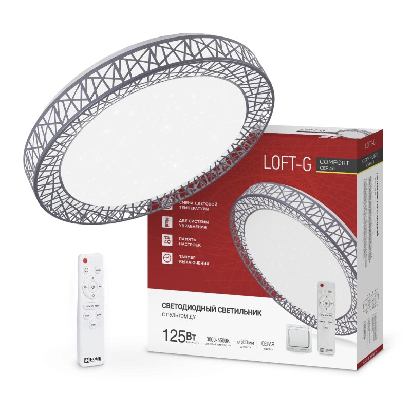 Светильник светодиодный COMFORT LOFT-G 125Вт 230В 3000-6500K 10000Лм 500x105мм с пультом ДУ, код 4690612059518, производитель IN HOME