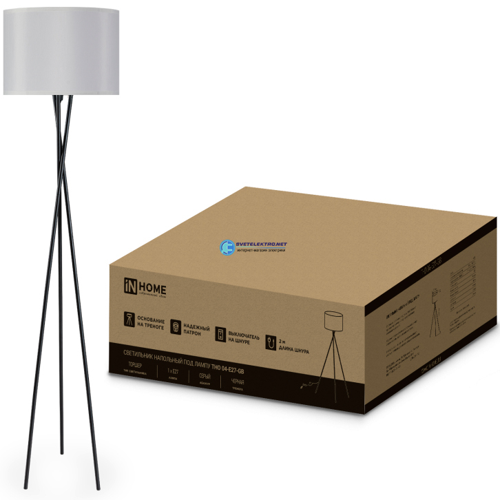 Светильник напольный под лампу ТНО 04-Е27-GB 230В серый абажур, черная тренога, код 4690612059570, производитель IN HOME