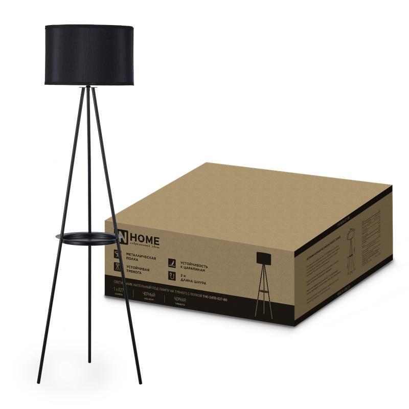 Светильник напольный под лампу ТНО 04ПВ-Е27-BB 230В полка, черный абажур, черная тренога, код 4690612060248, производитель IN HOME