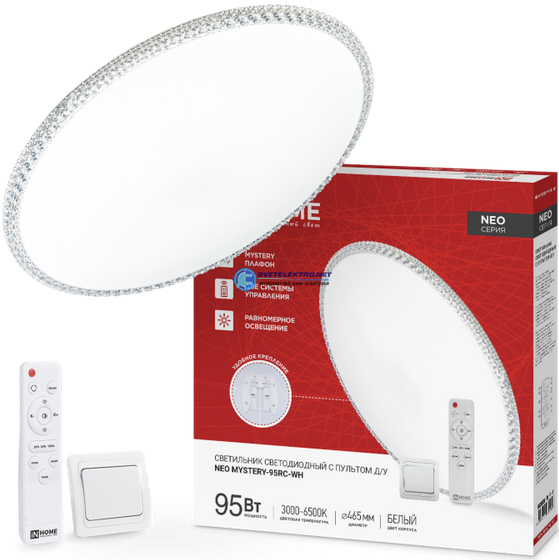Светильник светодиодный NEO MYSTERY-95RC-WH 95вт 230В 3000-6500K 7600Лм 465x67мм с пультом ДУ белый, код 4690612060910, производитель IN HOME