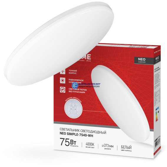 Светильник светодиодный NEO SIMPLE-7540-WH 75Вт 230В 4000K 6000Лм 370x60мм белый, код 4690612062532, производитель IN HOME