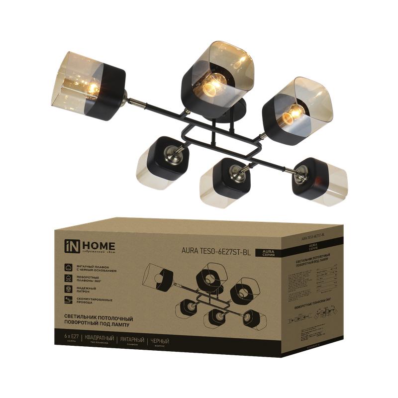 Светильник потолочный поворотный AURA TESO-6E27ST-BL 6хЕ27 янтарные плафоны, черный корпус IN HOME 4690612063560 IN HOME