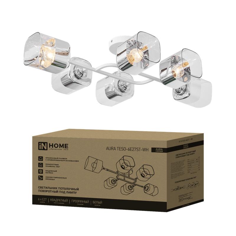 Светильник потолочный поворотный AURA TESO-6E27ST-WH 6хЕ27 прозрачные плафоны, белый корпус IN HOME 4690612063584 IN HOME