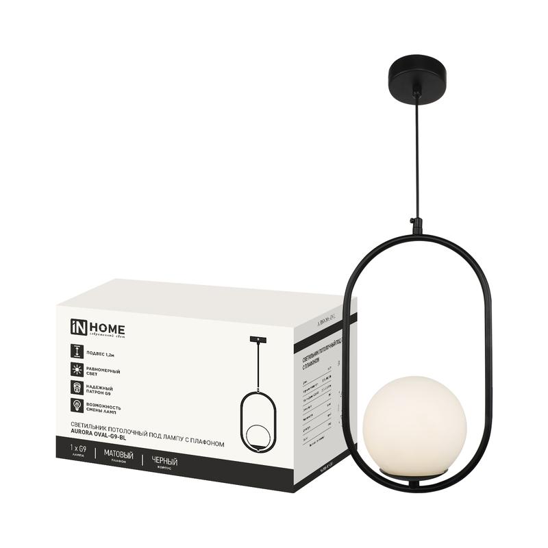 Светильник подвесной под лампу AURORA OVAL-G9-BL 1хG9 матовый плафон, черный корпус IN HOME 4690612063676 IN HOME