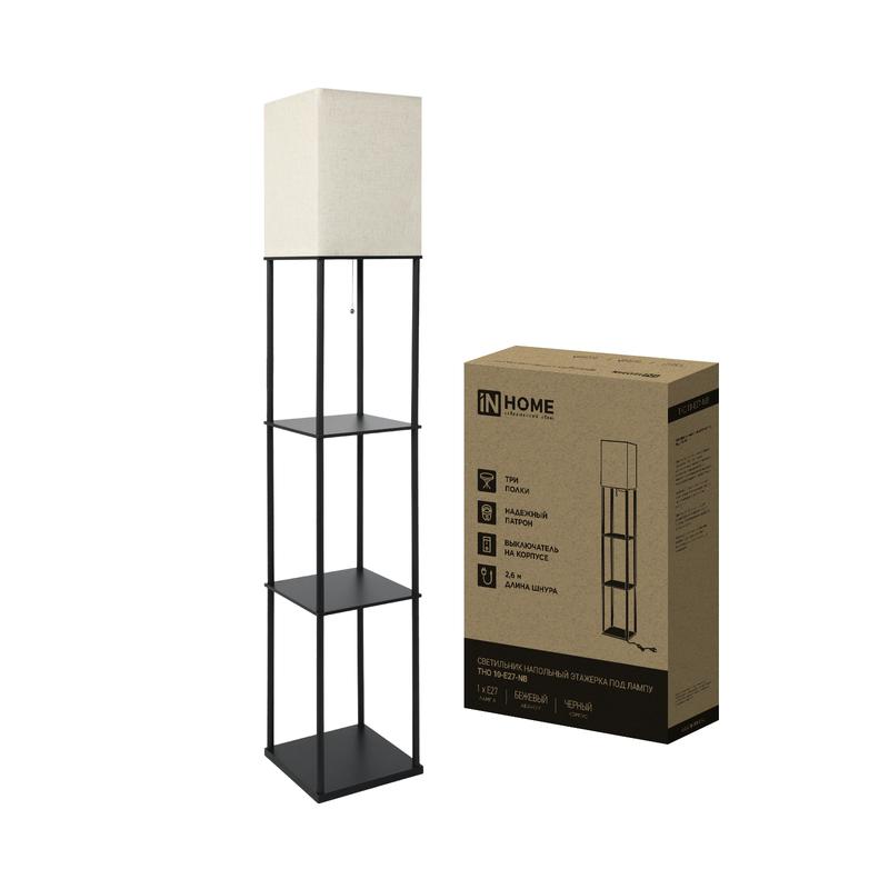Светильник напольный под лампу этажерка ТНО 10-Е27-NB бежевый абажур, черный корпус IN HOME 4690612064475 IN HOME