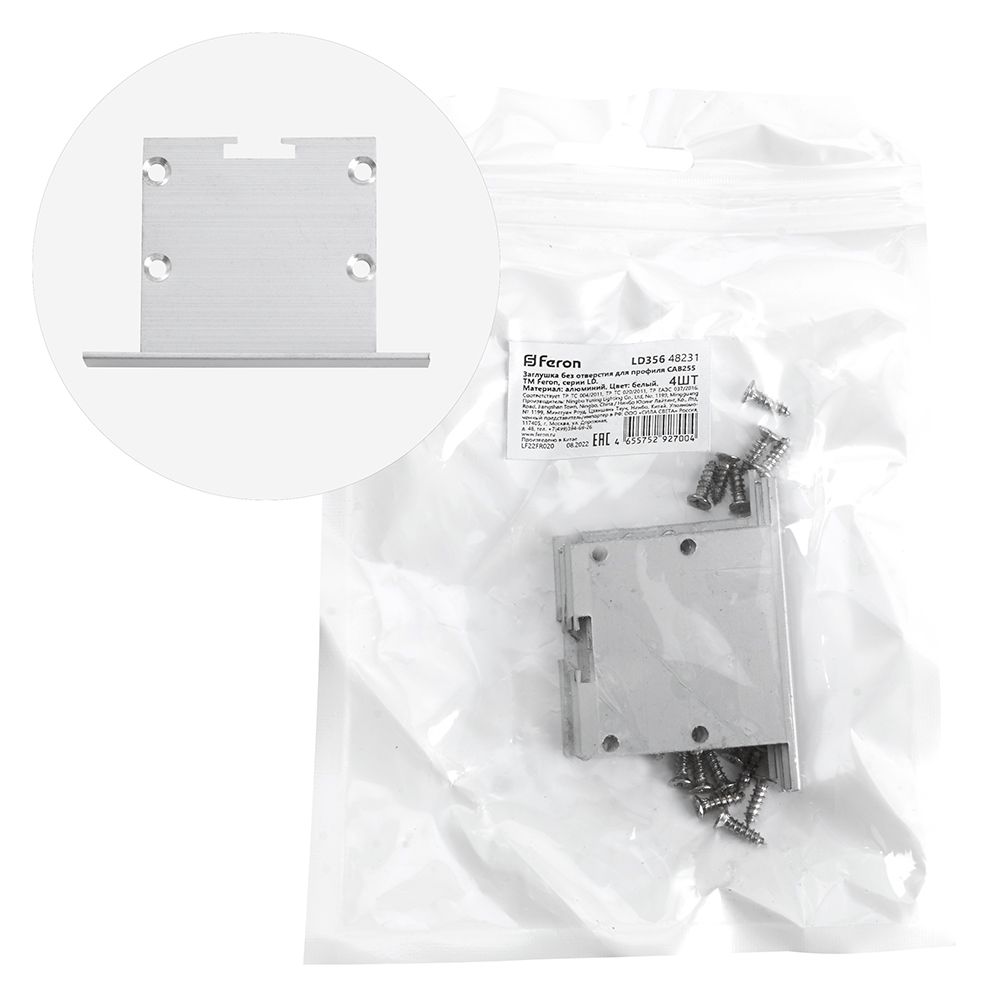 Заглушка для профиля CAB255 без отверстия алюминий (4шт), код 48231, производитель FERON