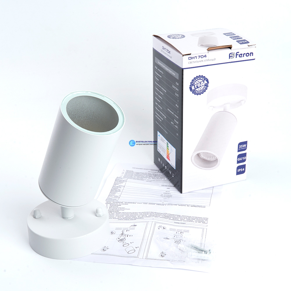 Светильник ДБУ GU10 без лампы наклонный IP54 белый, код 48323, производитель FERON