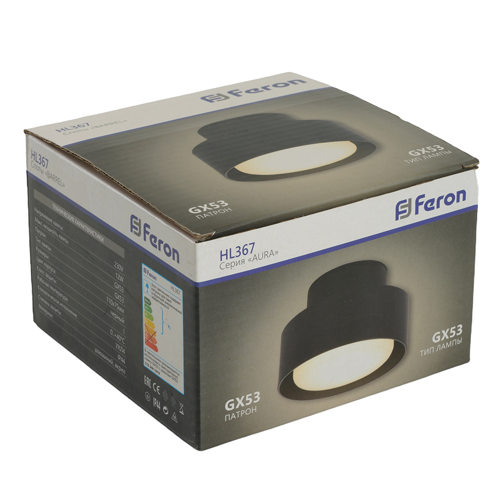 Светильник ДПО-12w GX53 без лампы IP44 черный, код 48406, производитель FERON