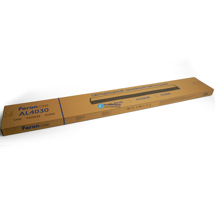 Светильник светодиодный ДПО 54вт 6500К 4320Лм рассеиватель матовый в стальноме черный ONE, код 48539, производитель FERON