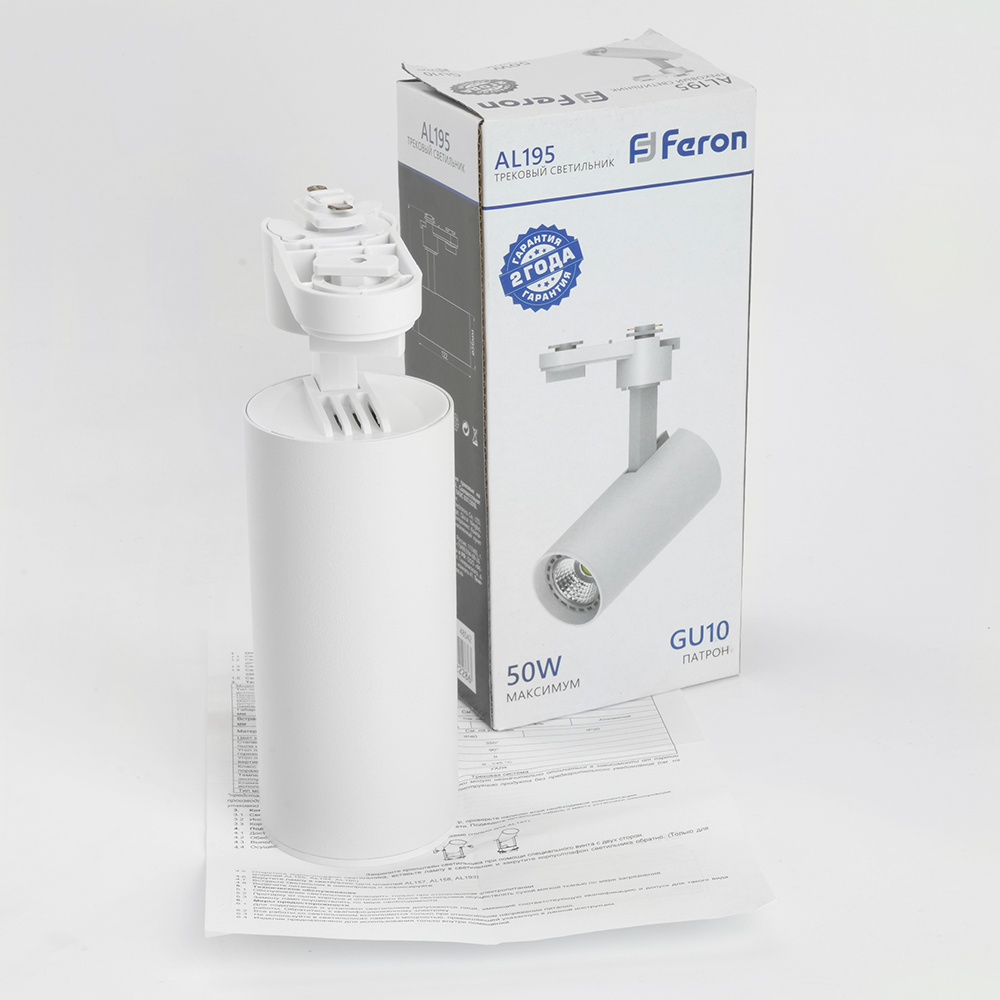 Светильник трековый на шинопровод ДПО GU10 без лампы белый, код 48542, производитель FERON