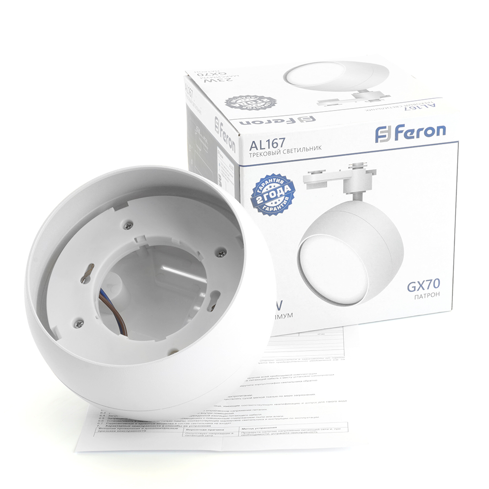 Светильник трековый на шинопровод ДПО GX70 без лампы IP40 белый, код 48550, производитель FERON