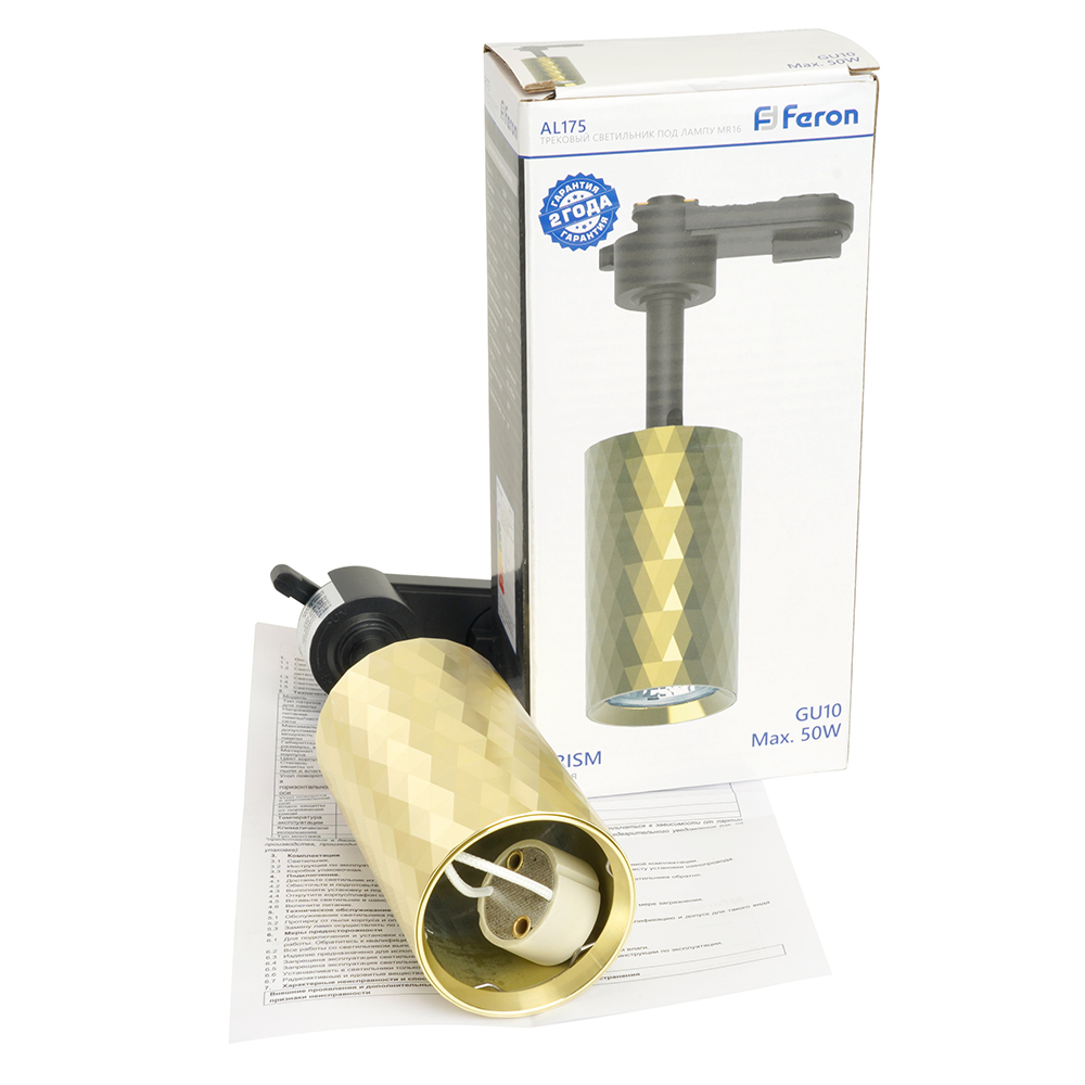 Светильник трековый на шинопровод ДПО GU10 без лампы золото, код 48697, производитель FERON