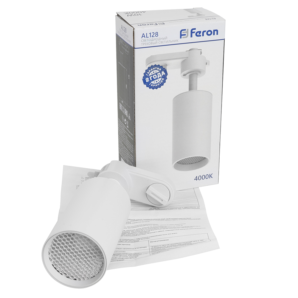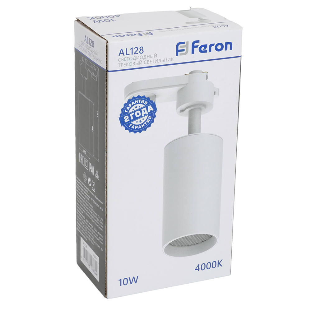 Светильник светодиодный трековый на шинопровод ДПО-10w 4000К 800Лм белый с антибликовой решеткой, код 48916, производитель FERON