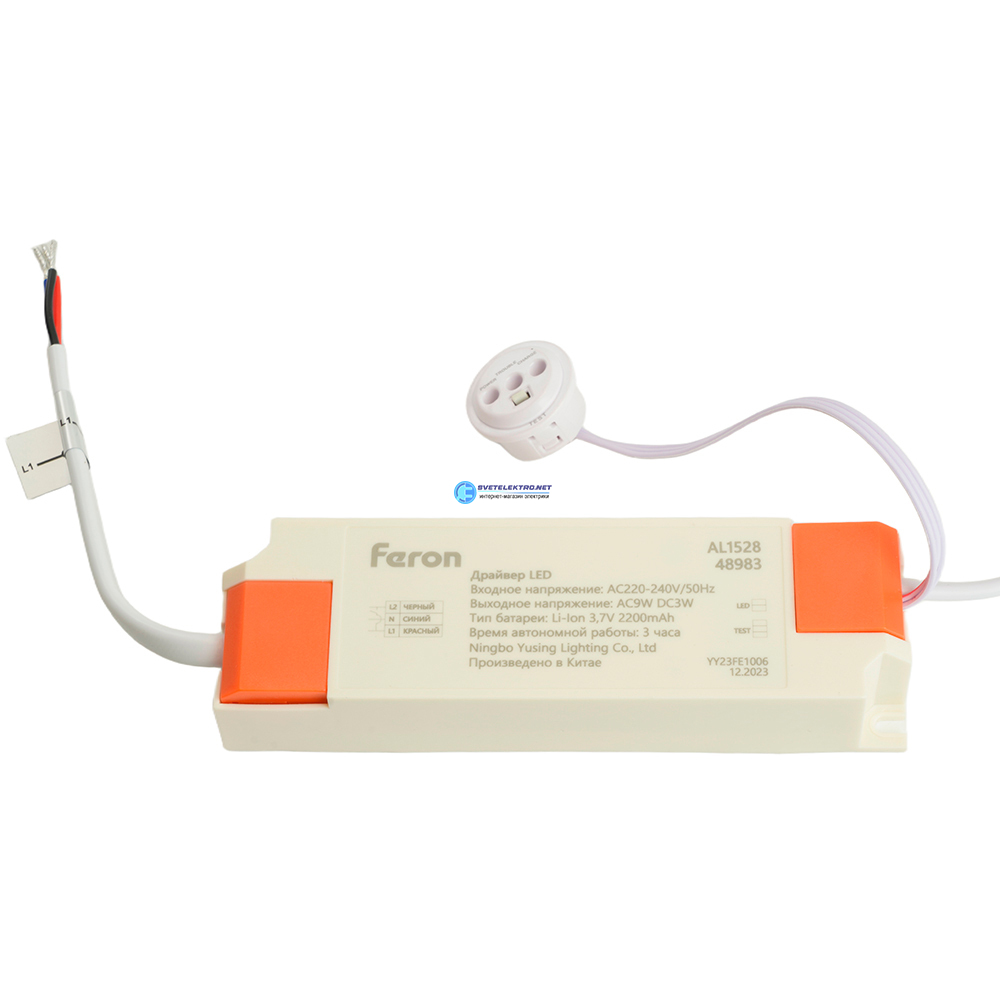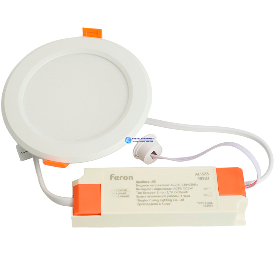 Светильник светодиодный ДВО-9w 6500К 720Лм с БАП 3ч. в пластиковом корпусе белый, код 48984, производитель FERON