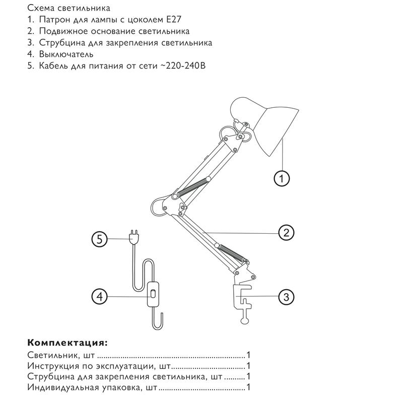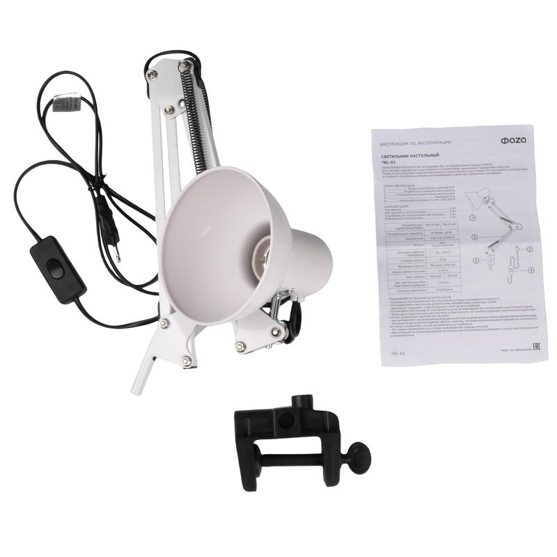 Светильник настольный TBL-01 Е27 на струбцине белый, код 5046214, производитель ФАZА