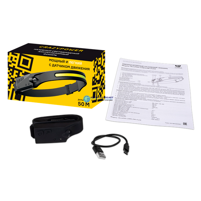 Фонарь CRAZYpower Налобный H03-01-FLEX Аккумуляторный, код 5048171, производитель JazzWay