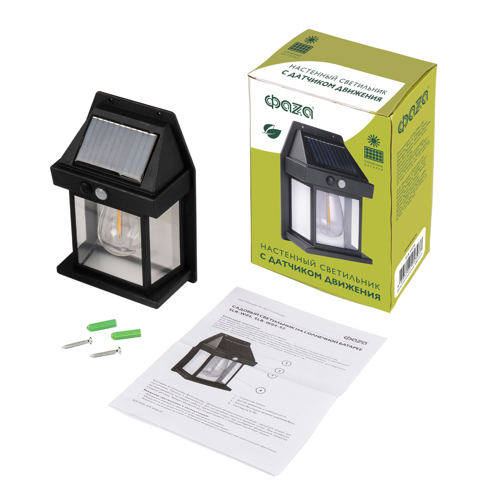 Светильник светодиодный на солнечной батарее, с датчиком движения SLR-W04 филамент 5053977 ФАZА