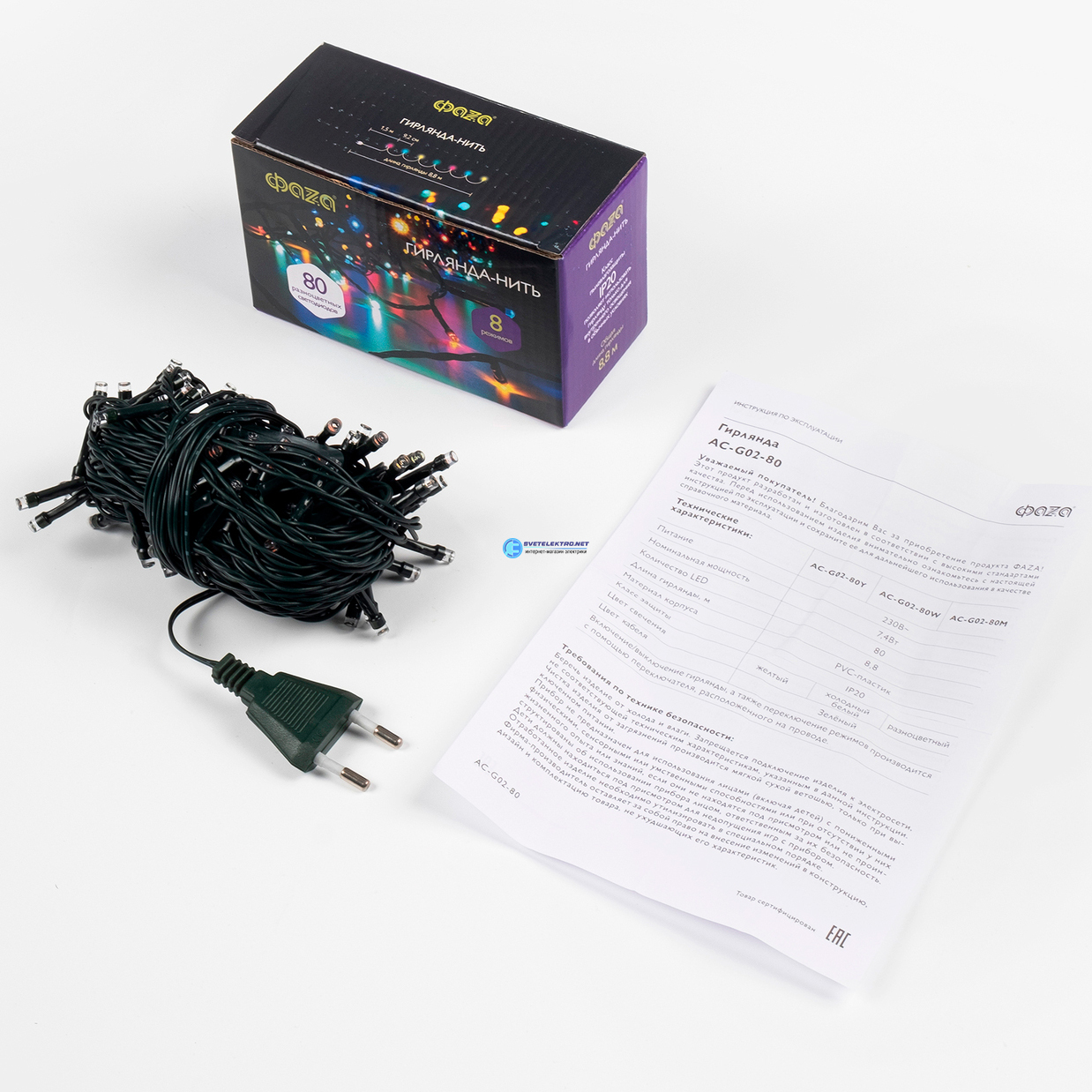 Гирлянда-нить для внутренних помещений 80 мульт. LED 8.8 м. 8 реж. 220В Jazzway 5059580 JazzWay
