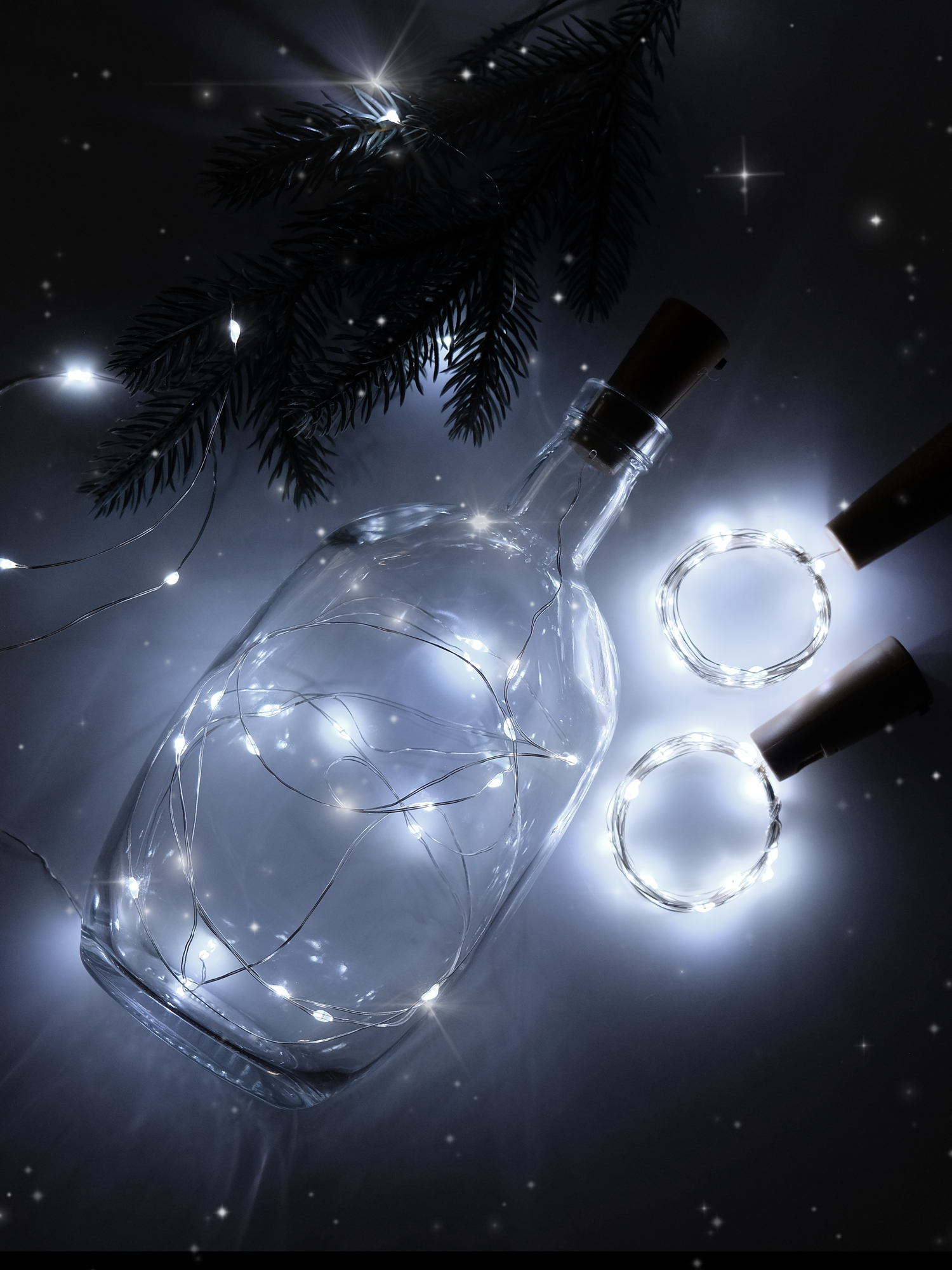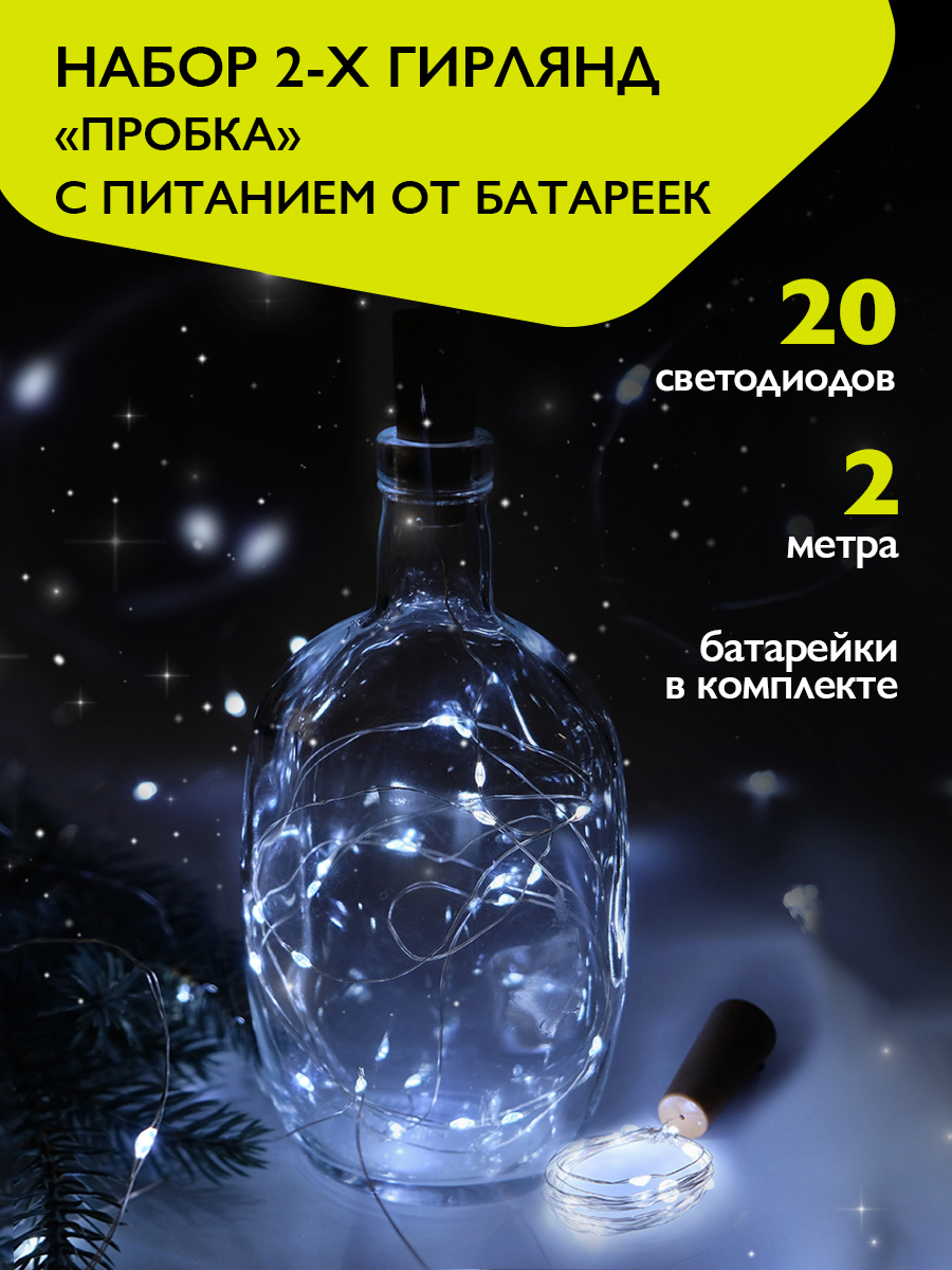 Комплект из 2-х гирлянд Пробки для внутренних помещений IP20 DC-G04-20WS2 белый свет 20 LED 3xAG13, код 5059696, производитель JazzWay