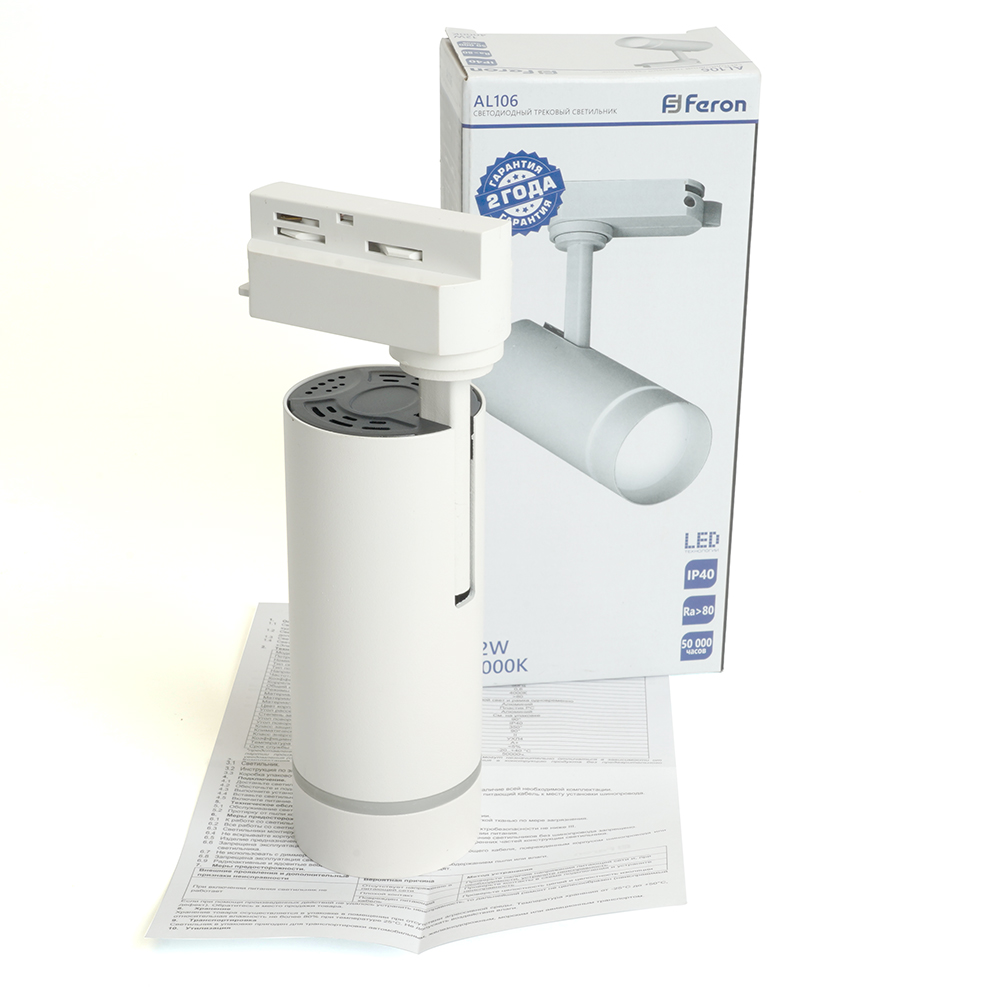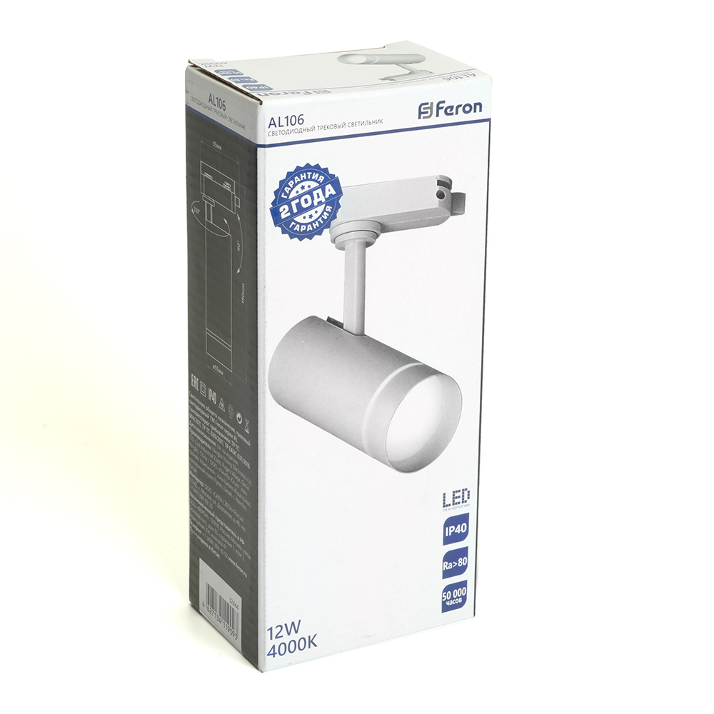 Светильник светодиодный трековый на шинопровод ДПО-12w 2700К 1080Лм белый, код 51009, производитель FERON