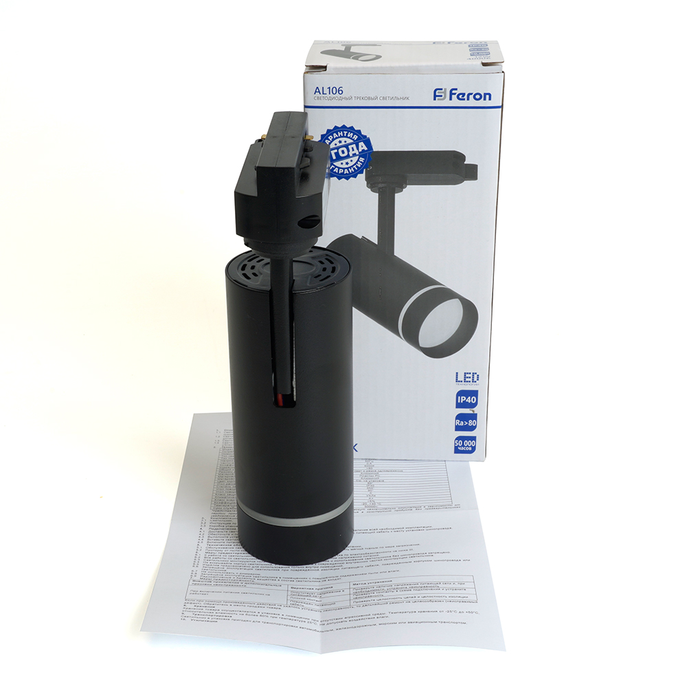 Светильник светодиодный трековый на шинопровод ДПО-12w 2700К 1080Лм черный, код 51010, производитель FERON