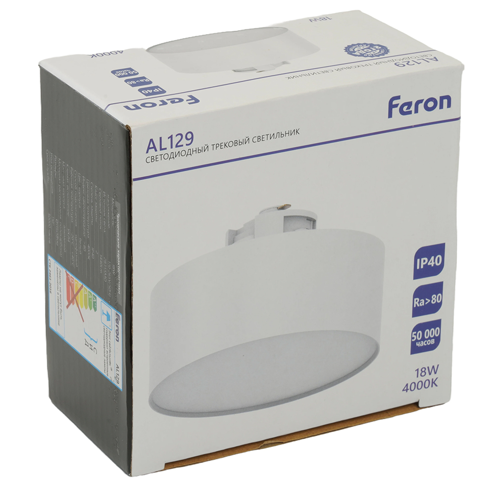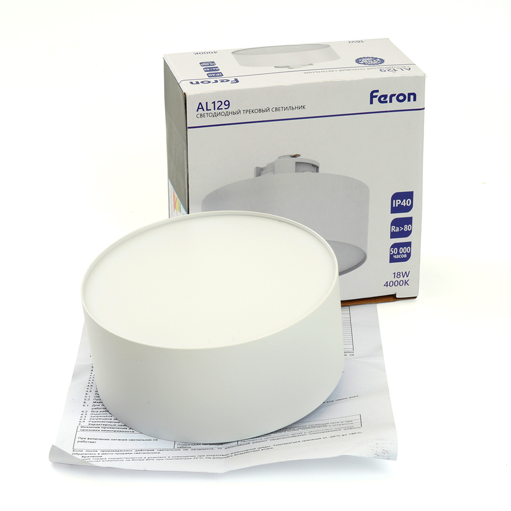 Светильник светодиодный трековый на шинопровод ДПО-18w 4000К 1440Лм белый, код 51159, производитель FERON