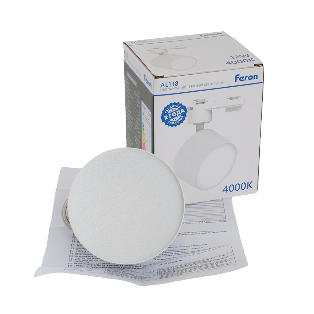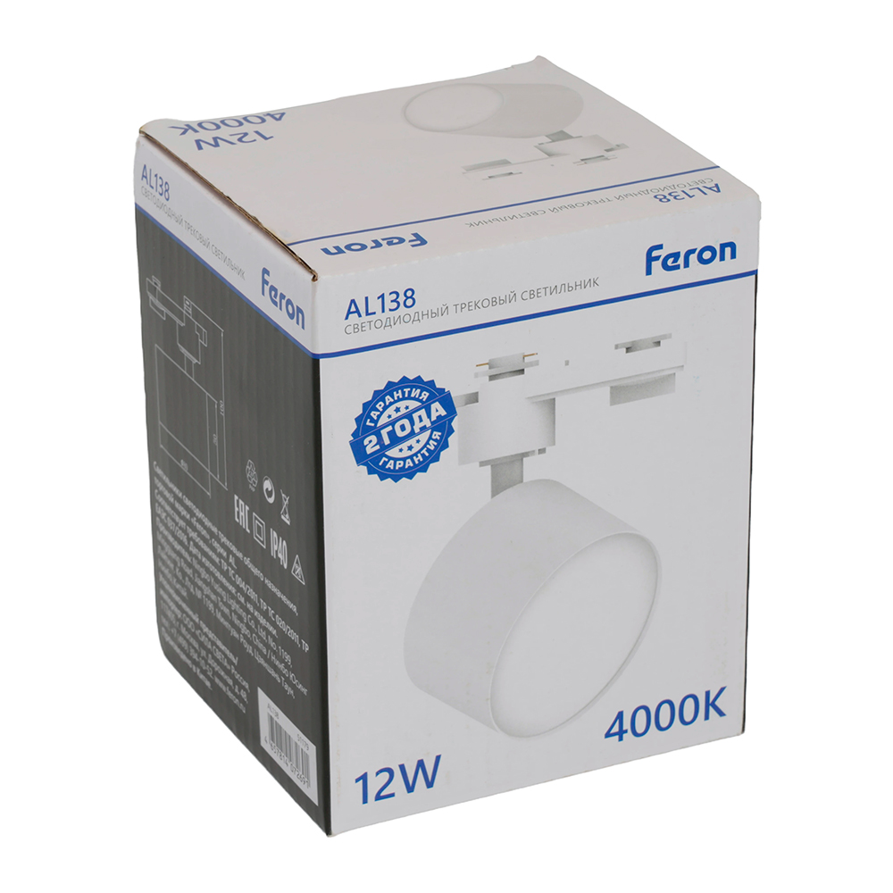 Светильник светодиодный трековый на шинопровод ДПО-12w 4000К 1080Лм белый, код 51179, производитель FERON