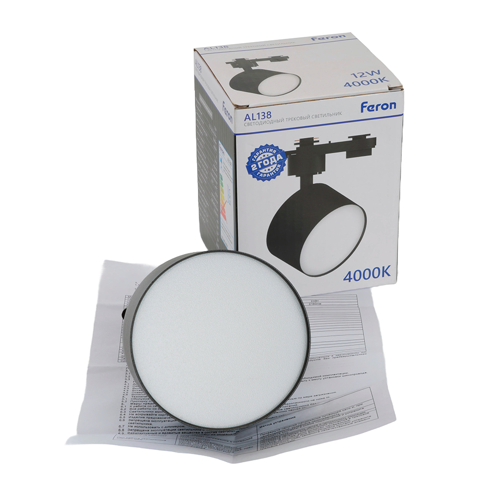 Светильник светодиодный трековый на шинопровод ДПО-12w 4000К 1080Лм черный, код 51180, производитель FERON