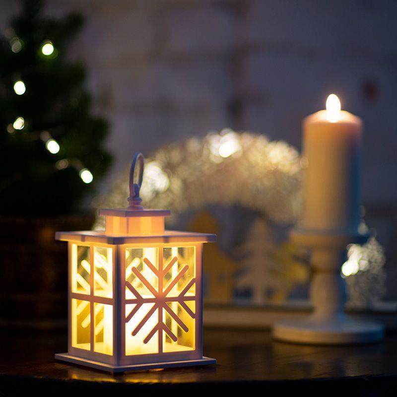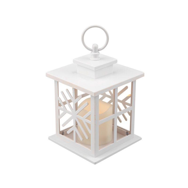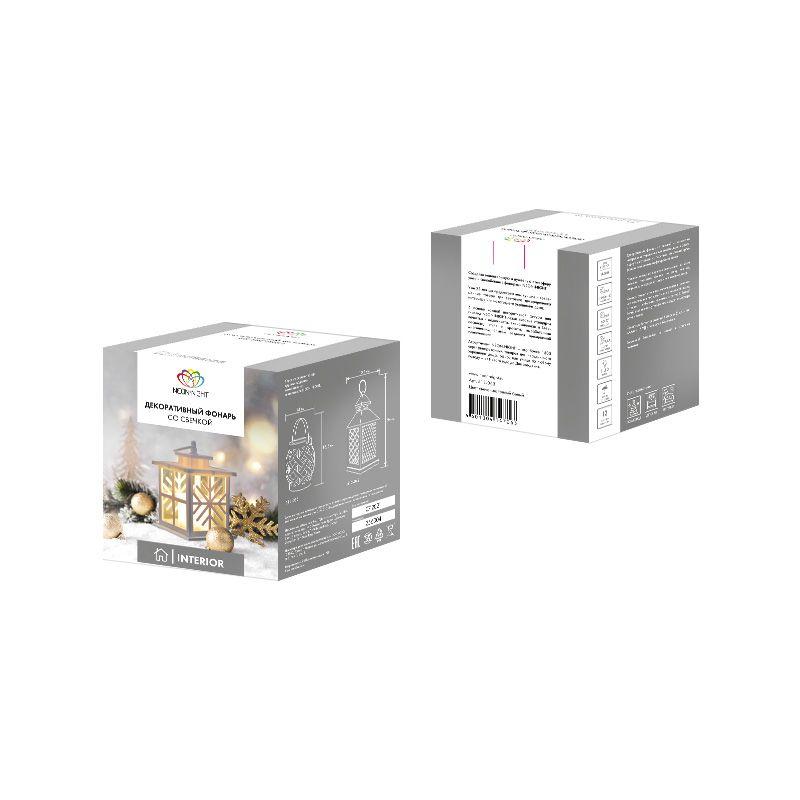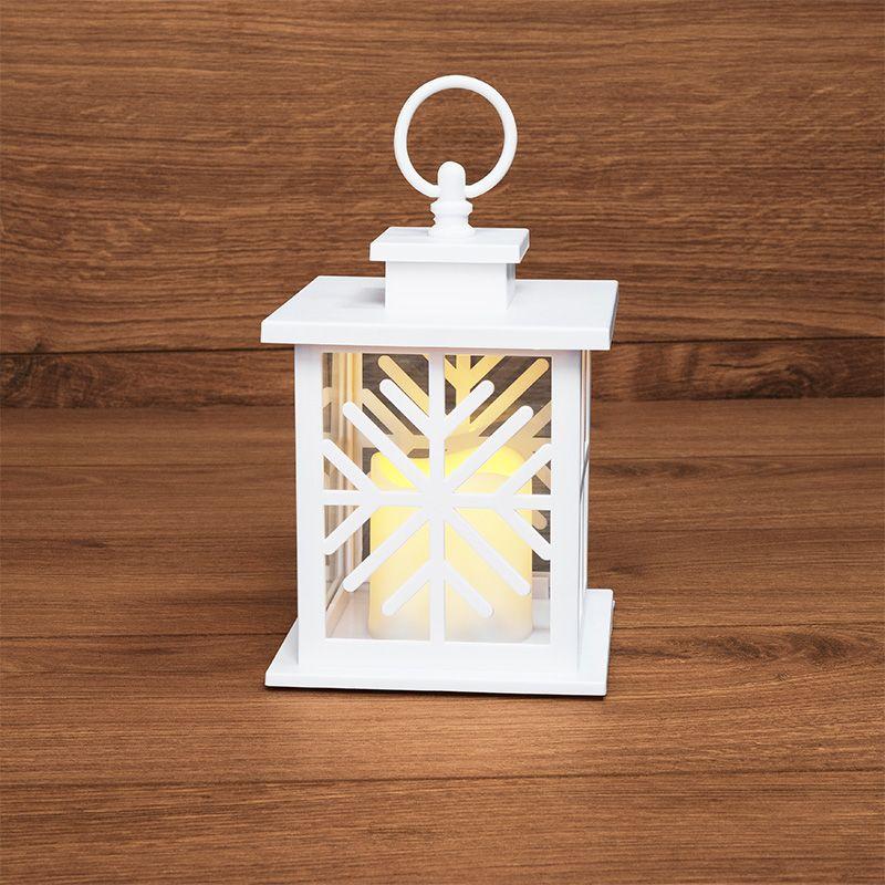 Фонарь декоративный со свечкой, белый корпус со снежинкой, размер 12х12х18 см, тёплый белый 513-043 Neon-Night