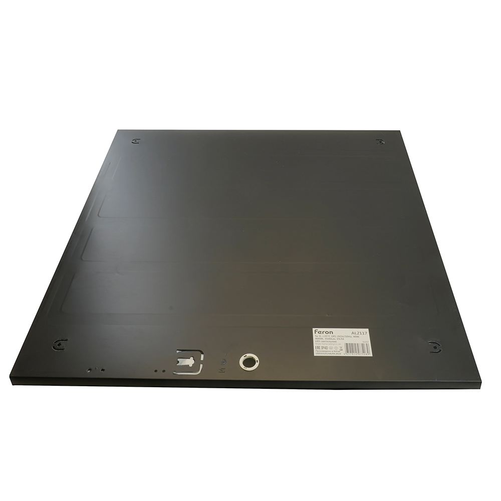 Светильник светодиодный ДВО 40вт 6500К 3500Лм 595х595х25 матовый с равномерной засветкой черный IP40 AL2117, код 51338, производитель FERON