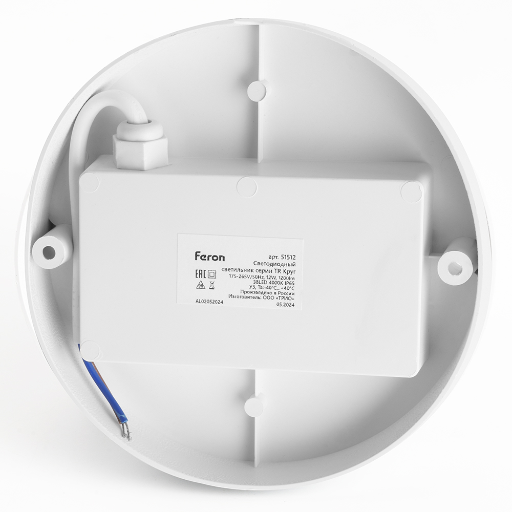 Светильник светодиодный ДБП-12w 4000К IP65 белый матовый TR Круг, код 51512, производитель FERON