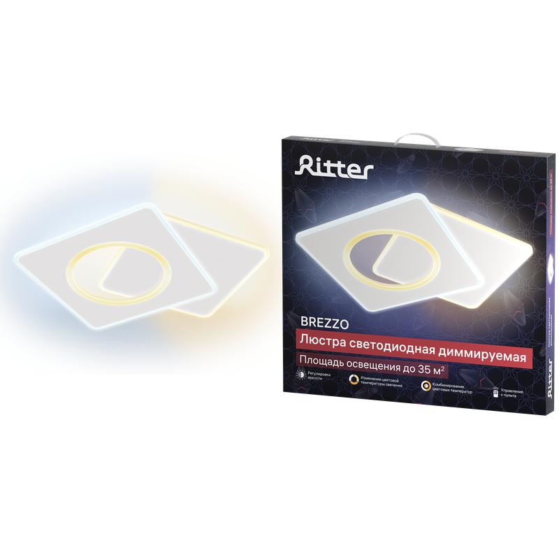 Люстра потолочная светодиодная диммируемая, BREZZO, с ДУ, режима, 755x600x50мм, 100вт, 2700+6400K/4200K/6400+2700K, белый, код 52390 1, производитель RITTER