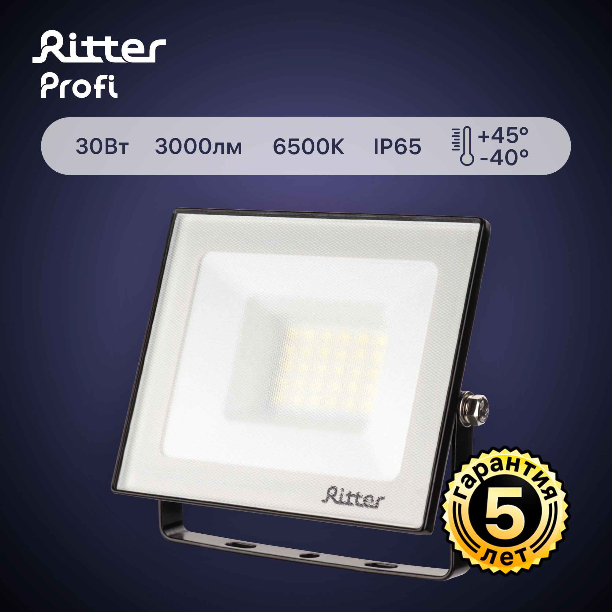 Прожектор светодиодный, серия PROFI, 230В, 30Вт, 600К, 3000Лм, IP6, гарантия лет, черный, ,, код 53407 9, производитель RITTER