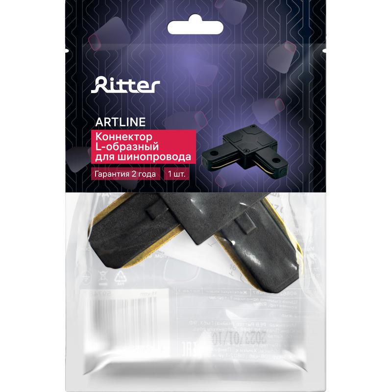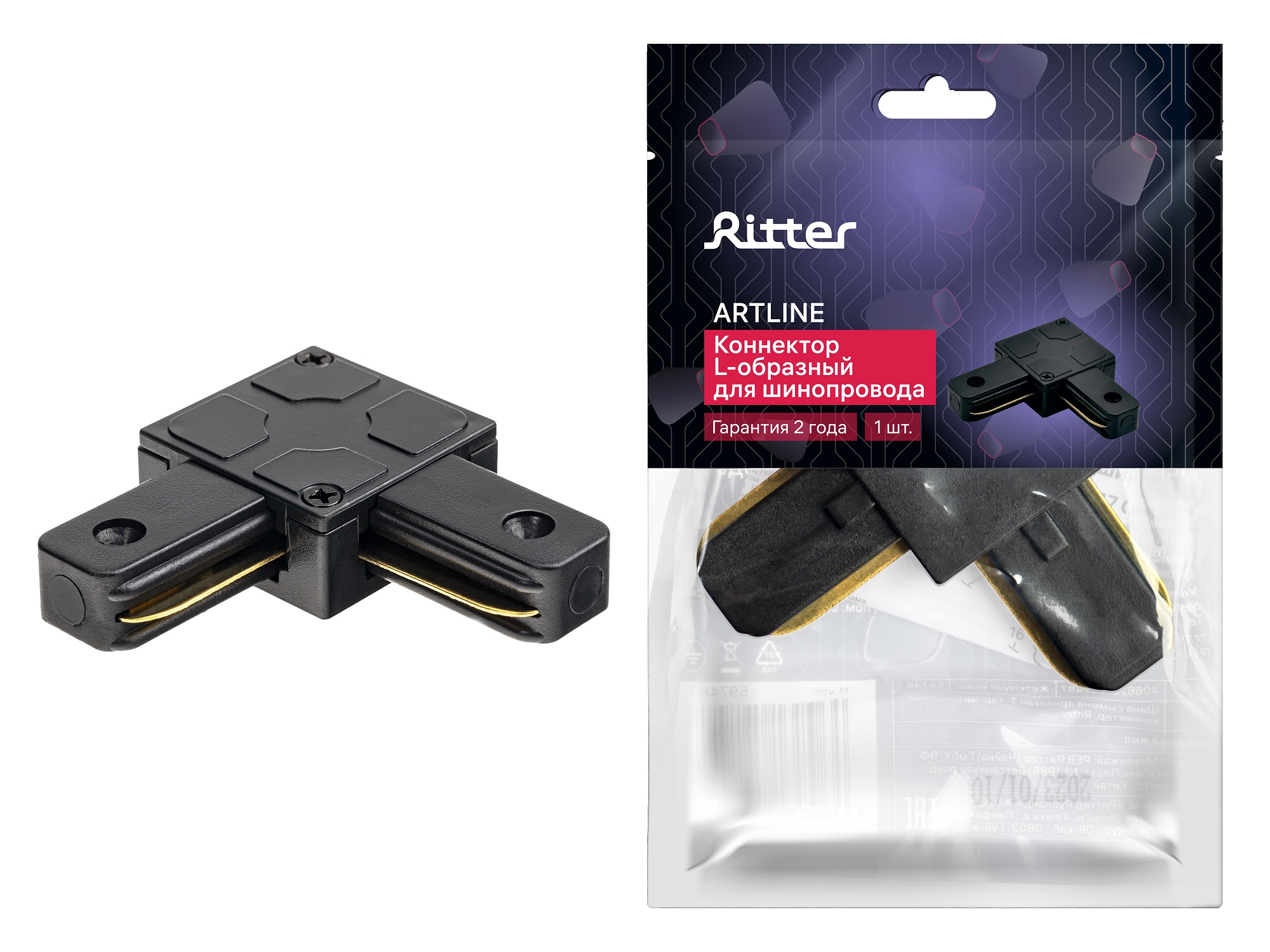 Коннектор трековый, для соединения шинопровода, L-образный, жесткий, ARTLINE, пластик/медь, черный, ,, код 59746 3, производитель RITTER