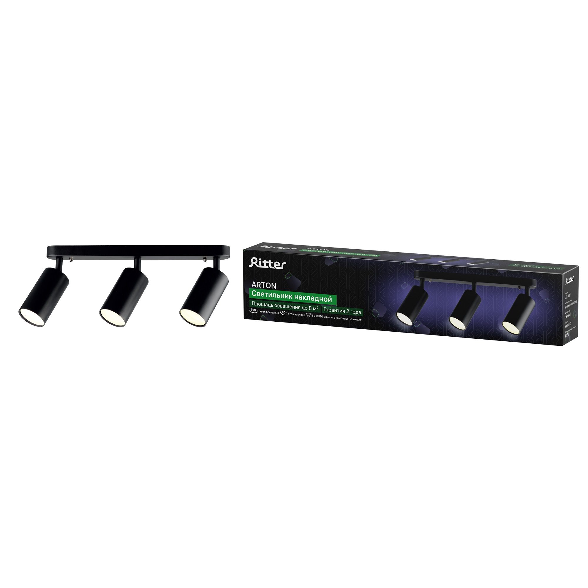 Светильник накладной, ARTON, поворотный, цилиндр, 350x55x160мм, 3хGU10, алюминий, черный, ,, код 59935 7, производитель RITTER