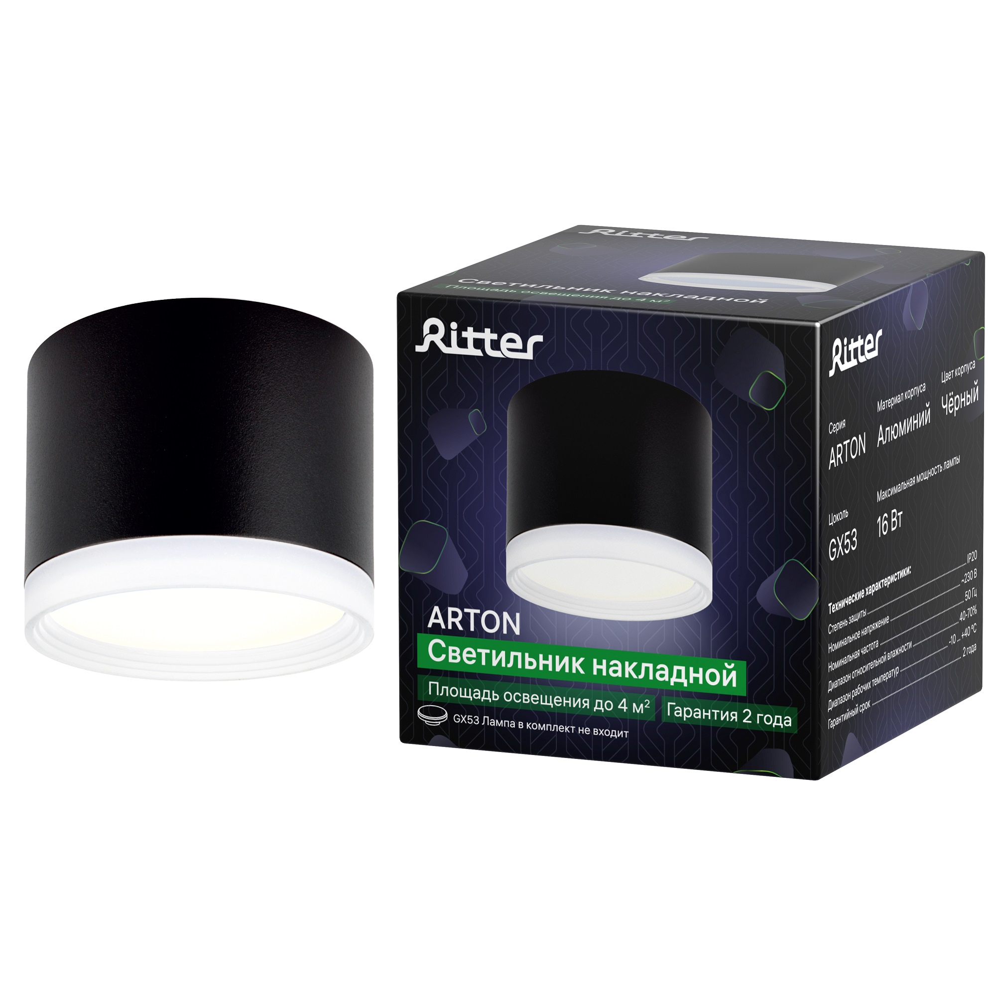 Светильник накладной, ARTON, цилиндр, 85х85х70мм, GX53, алюминий/стекло, черный, ,, код 59947 0, производитель RITTER