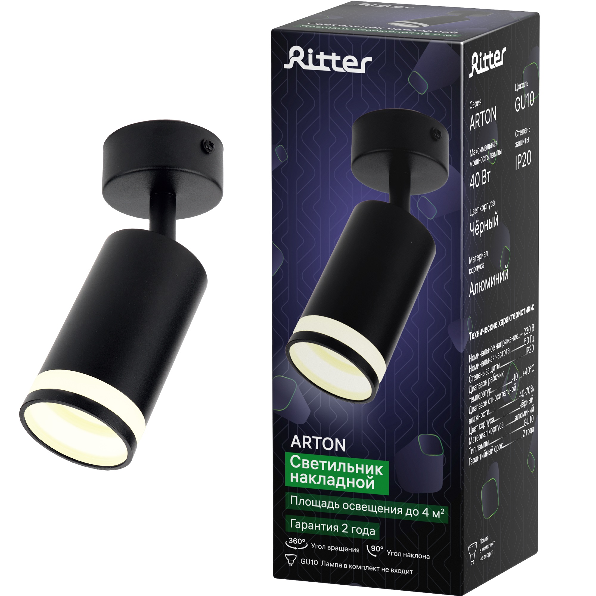 Светильник накладной, ARTON, поворотный, цилиндр, 55х55х100мм, GU10, алюминий/стекло, черный, ,, код 59971 5, производитель RITTER
