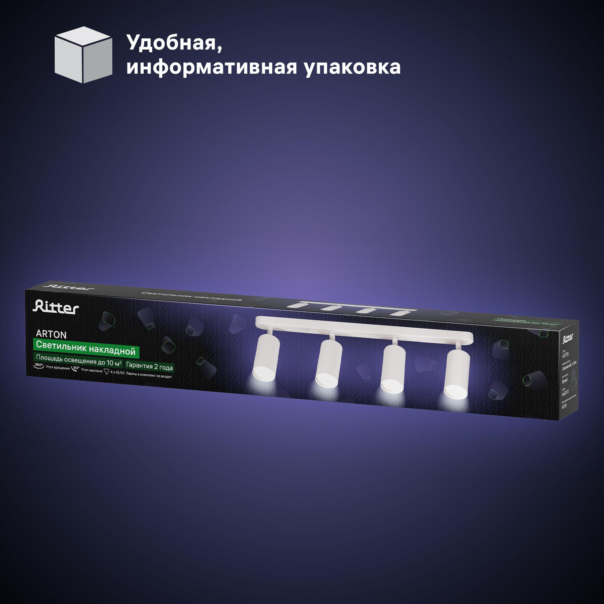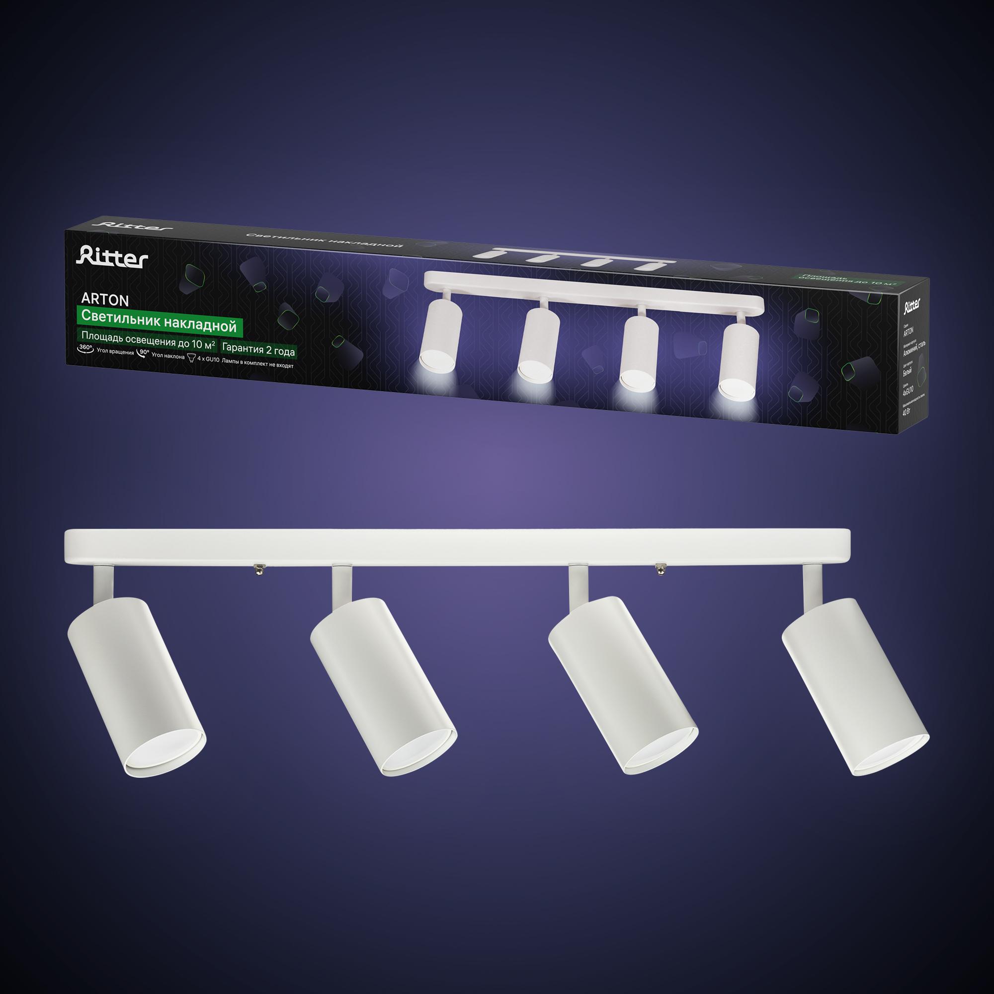 Светильник накладной, ARTON, поворотный, цилиндр, 500x55x160мм, 4хGU10, алюминий, белый, ,, код 59991 3, производитель RITTER